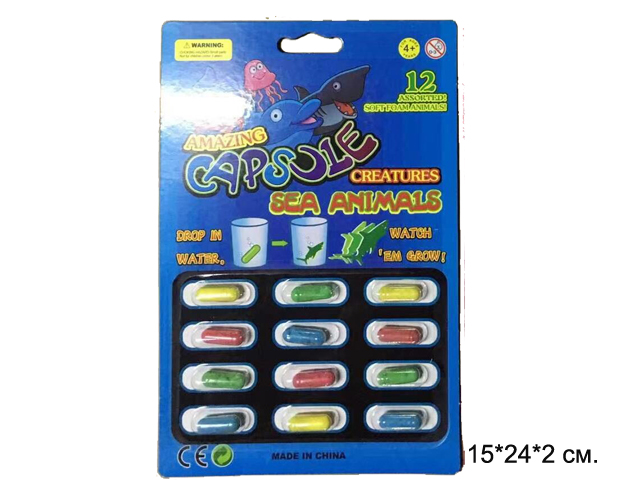 Игрушка растущая арт. HY1517-10" Морские животные 12шт. на листе 23*15*2