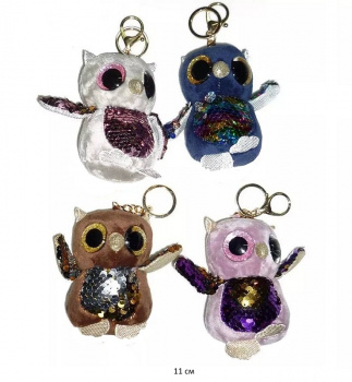 - им Сова арт. 238811-57 Цвета микс с пайетками брелок 11 см в пак.)×им Сова арт. 238811-57 Цвета микс с пайетками брелок 11 см в пак.)Брелок мягкая игрушка в виде блестящей совы с пайетками на металлическом кольце