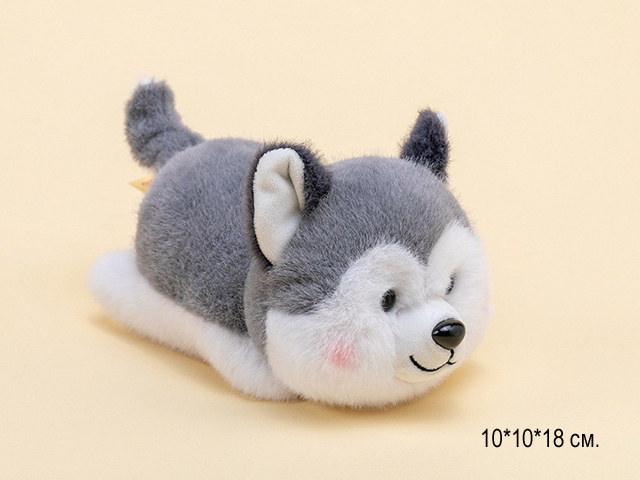 им Собака арт. 209986 Малыш хаски серый лежит ароматизированный 18 см в пак.