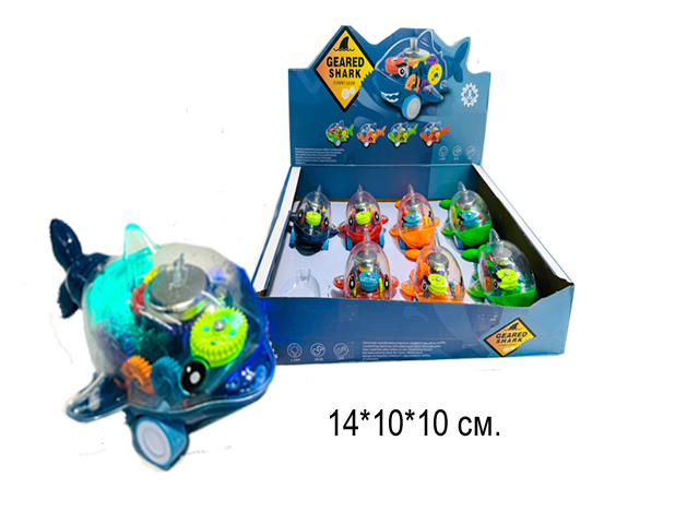 Морские арт. SR878-15 Акула, дельфин 2 вида шестеренки на бат. свет, звук (8 шт.) в кор.•Игрушка без индивидуальной упаковки