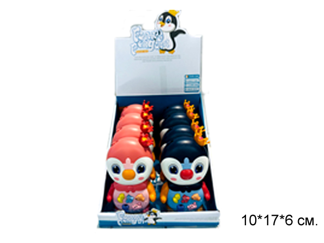 Пингвин арт. 855-136A Развив. на батар. музыка, свет (8 шт.) шоубокс•Пингвин выполнен в яркой расцветке, что несомненно привлечет внимание ребенка. Музыкальная игрушка воспроизводит звуки, приятные для восприятия ребенка: звуки животных, колыбельные, веселые мелодии. При помощи короны можно переключать звуки и мелодии. Игрушка имеет световые элементы в виде подсветки. Проработанные детали придают реалистичность и делают процесс игры увлекательнее.