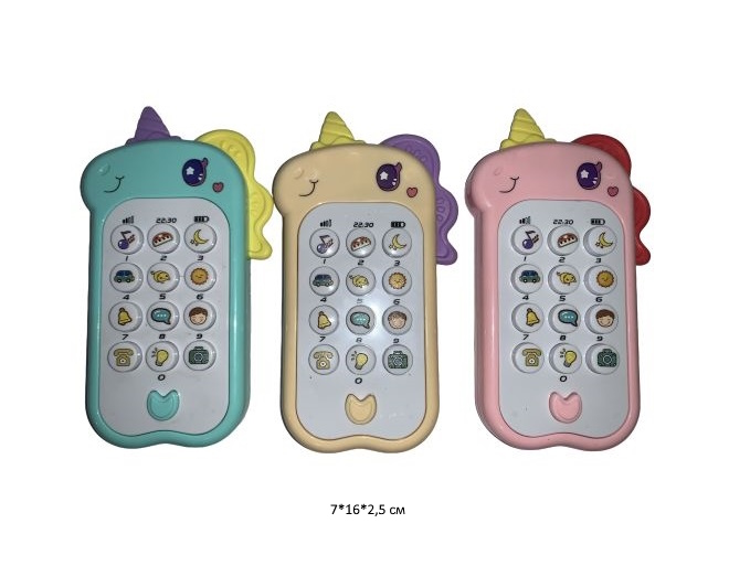 Телефон арт. 335-72 "Единорог" цвета микс муз. на батар. в пак.)