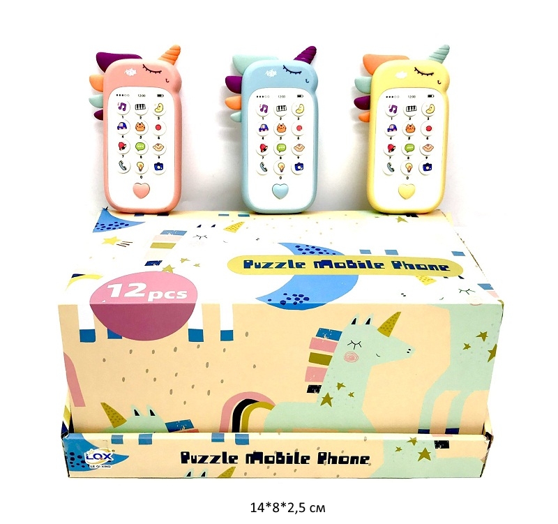 Телефон арт. 188-7B2/LB-801 "Единорог" цвета микс муз. на батар. (12 шт.) шоубокс_+)Каждая кнопка преподнесет сюрприз и поднимет настроение. Благодаря своим габаритам, игрушка удобно ложится в детскую ручку.