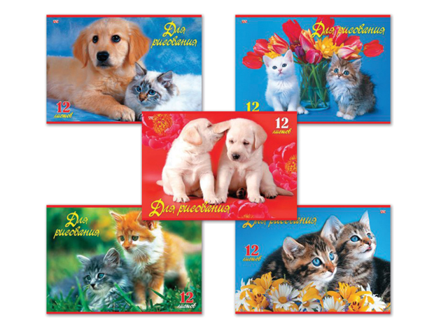 Альбом А4 формата, на скобе. Внутренний блок - 12 листов, офсетная бумага 100 г/м2. Обложка изготовлена из плотной офсетной бумаги 120 г/м2. Альбом подходит для рисования карандашами, фломастерами, красками. Поставляется в 5 вариантах дизайна без возможности выбора.