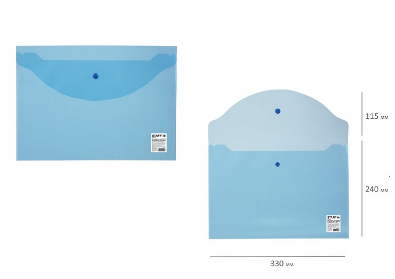кс_Папка-конверт с кнопкой арт. 224623 STAFF А4 до 100 листов прозрачная синяя 0,12 мм