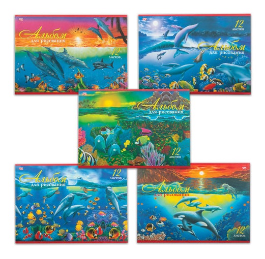 кс_Альбом для рисования арт. 103400 А4, 12 лист скоба, обложка офсет, HATBER VK 205х290мм "Дельфины"