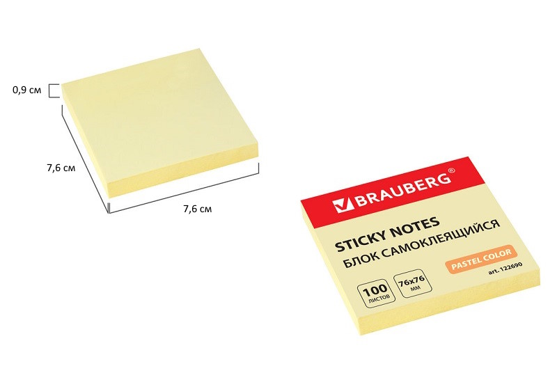 12.96 руб. 25.91 руб. - кс_Блок самоклеящийся арт. 122690 (стикеры) BRAUBERG ПАСТЕЛЬНЫЙ 76х76 мм, 100 л. желтый×кс_Блок самоклеящийся арт. 122690 (стикеры) BRAUBERG ПАСТЕЛЬНЫЙ 76х76 мм, 100 л. желтыйБумага для заметок с клейким краем рекомендуется для использования в процессе совещаний, обучения, мозговых штурмов. Идеально подойдет для работников офиса и руководителей. Стикеры классического жёлтого цвета в форме квадрата 76х76 мм состоят из 100 листов. Плотность бумаги составляет 75 г/м2. Клейкий слой - 35 Н/м. Легко клеятся к любой поверхности. Не оставляют следов. Упакованы в полиэтиленовую пленку.