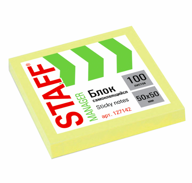 32.14 руб. 64.28 руб. - кс_Блок самоклеящийся (стикеры) арт. 127142 STAFF, 50х50 мм, 100 листов, желтый×кс_Блок самоклеящийся (стикеры) арт. 127142 STAFF, 50х50 мм, 100 листов, желтыйБумага для заметок с клейким краем рекомендуется для использования в процессе совещаний, обучения, мозговых штурмов. Идеально подойдет для использования как в офисе, так и дома. Легко клеятся к любой поверхности. Не оставляют следов. Упакованы в полиэтиленовую пленку.