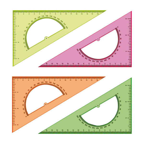 кв_Угольник пластиковый с транспортиром 17см 30*, прозрачный, 4 цвета, арт. ТК01 (1/20/40)Материал: пластик