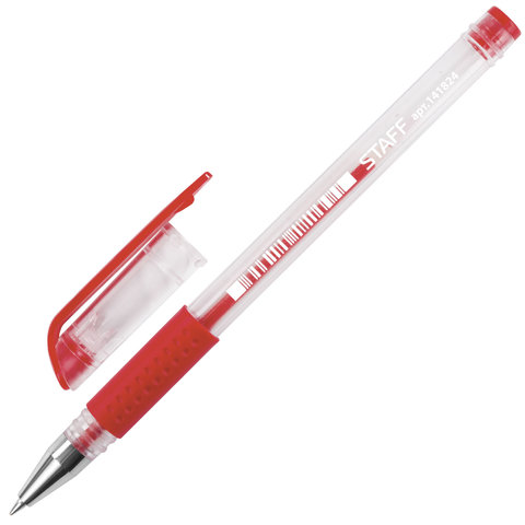 кс_Ручка гелевая с грипом арт.141824 STAFF,КРАСНАЯ,корпус прозрачн,узел 0,5 мм,линия письма 0,35 мм