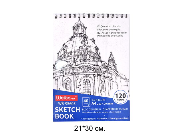 кц_Скетчбук арт. WB-95605 Альбом 40 л. А4 вертикальный на пружине 120 г/м²