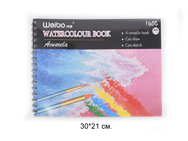 кц_Скетчбук арт. WB-95601 Альбом 30 л. А4 горизонтальный на пружине 160 г/м²