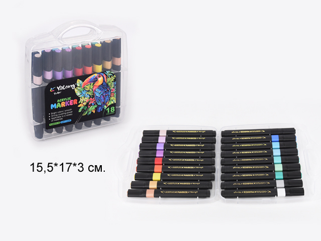 кц_Маркеры арт. YL245111-18 Акриловые 18 шт. в прозрачном кейсе