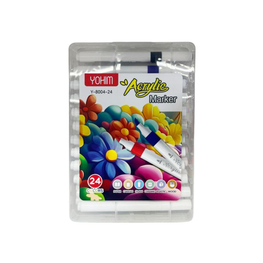 Маркеры арт. Y-8004-24 Акриловые 24 шт. "Цветы" в прозрачном кейсе|