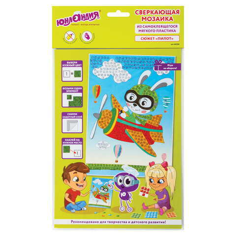 Сверкающая мозаика из мягкого пластика EVA ЮНЛАНДИЯ "Пилот" - это весёлый и занимательный способ развития мелкой моторики, аккуратности и цветового восприятия ребёнка. Все элементы в составе самоклеящиеся, для работы не требуются ножницы и клей.