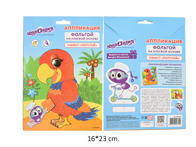 Набор для творчества "Аппликация из фольги", "Попугай", самоклеящаяся основа 20х15 см, ЮНЛАНДИЯ, 662