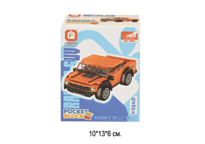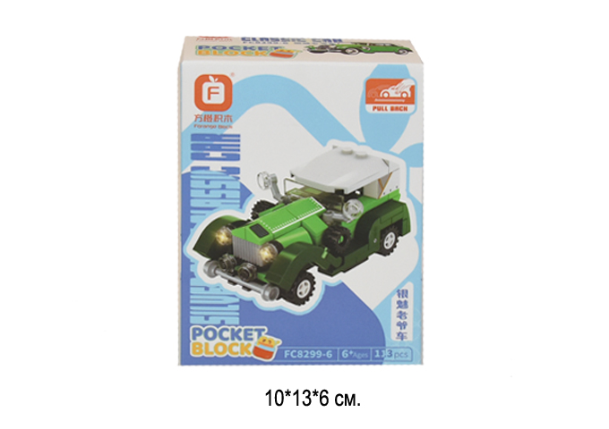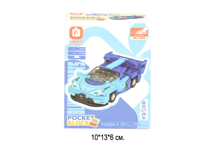 Конструктор арт. FC1615 Автомобиль инерц. свет, звук 269 дет. в кор.•~У модели инерционный механизм: потяните машинку на себя и отпустите, она умчится набирая скорость!