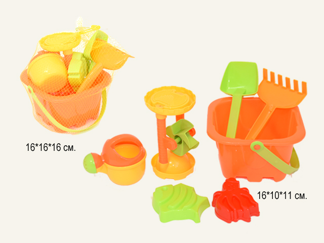 Песочный набор арт. 214A Ведро с лейкой и аксессуарами в сетке_/60 шт./