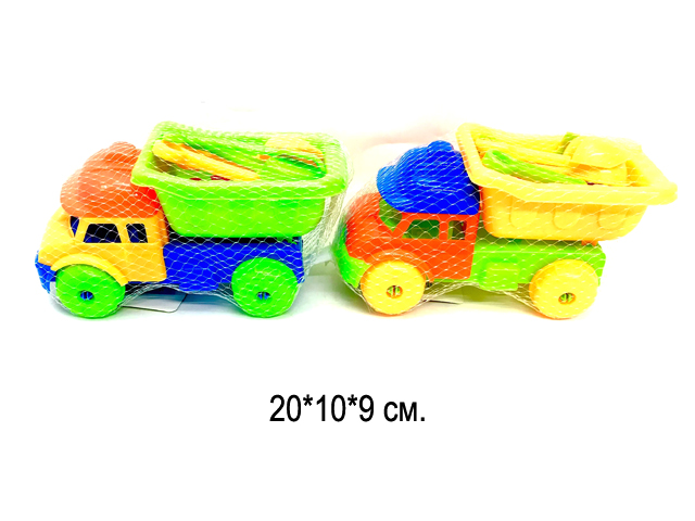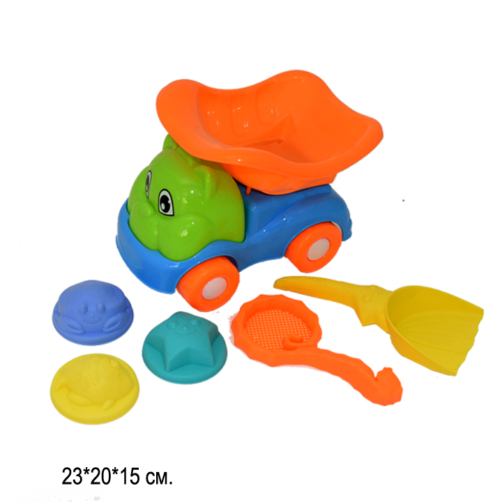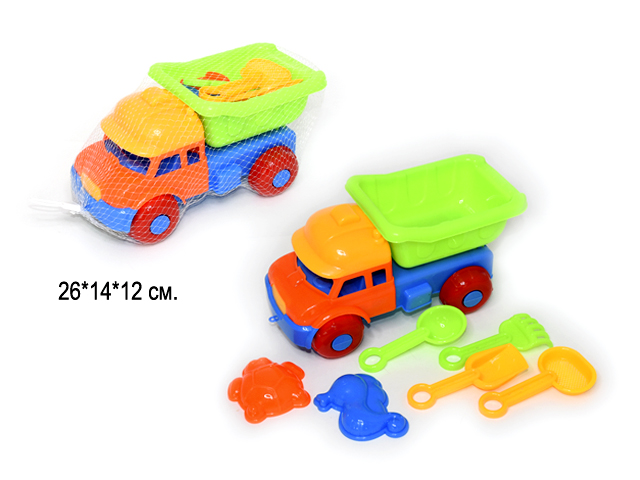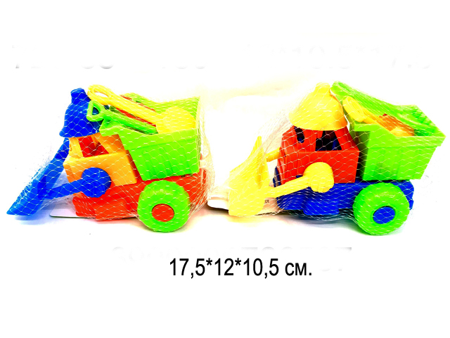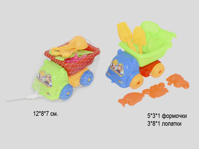 В набор входит самосвал, инструменты и формочки. Отличный детский набор для развития мелкой моторики рук и пальцев.