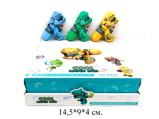 - Пистолет водн. арт. GS14 "Дино" (12 шт.) в шоубоксе_/20 шт./×Пистолет водн. арт. GS14 "Дино" (12 шт.) в шоубоксе_/20 шт./"Пускать мыльные пузыри гораздо интереснее и легче при помощи специального пистолета в виде Динозавра. При помощи такого приспособления можно выдувать большое количество мыльных шариков. Для начала игры необходимо вставить батарейки в пистолет и вкрутить «патроны» - бутылочки с мыльным раствором.