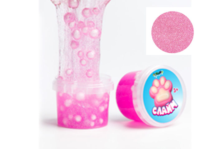 Слайм "СТЕКЛО" 90 гр с Малиновыми блестками с шариками