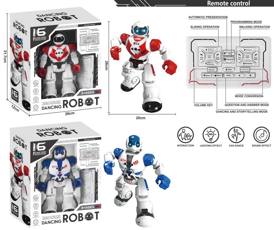 - Робот на р/у. арт. 6001M в пак.*/(24шт/бл)×Робот на р/у. арт. 6001M в пак.*/(24шт/бл)Робот умеет танцевать, воспроизводить музыку, имеет световые эффекты, поворачиваться вокруг своей оси и даже разговаривать. Возраст: от 3 лет Материал: пластик Производство: Китай Размер упаковки: 26 х 38 х 10.5 см601.68 руб. 1 203.35 руб.