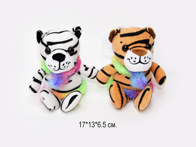 им Тигр арт. SF-45-15 В пушистом шарфе и юбочке на присоске в пак.~