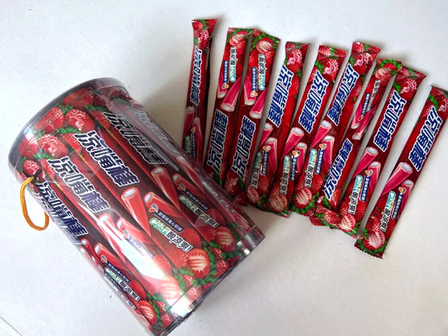 Конфета арт. 002152/002381-4 Жевательная Трубочка-тянучка с начинкой Клубника 16 г 40 шт. в банке#'*