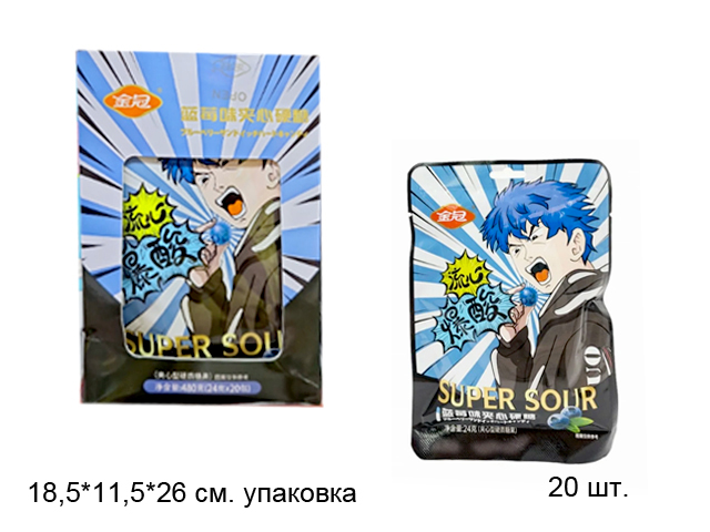 Конфета арт. 931902/931872 Суперкислая "Черника" 24 г 20 шт. в кор.;/