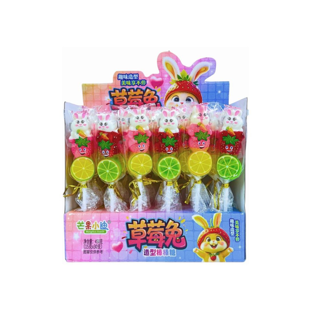 Конфета арт. 841999 Карамель на палочке "Зайка на фруктах" 15 г 30 шт. в кор.*