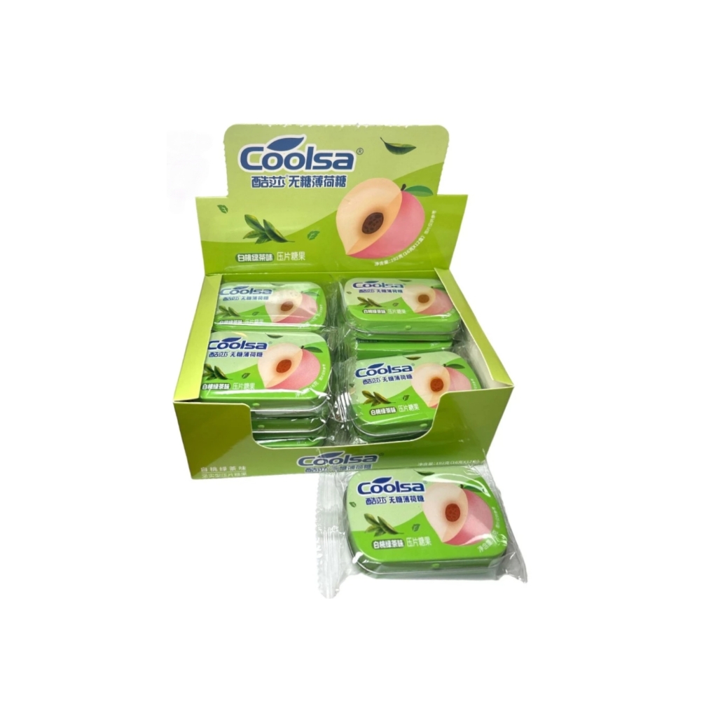 Конфета арт. 863736/863606 Драже мятное без сахара "Персик и зеленый чай" 16 г 12 шт. в кор.#