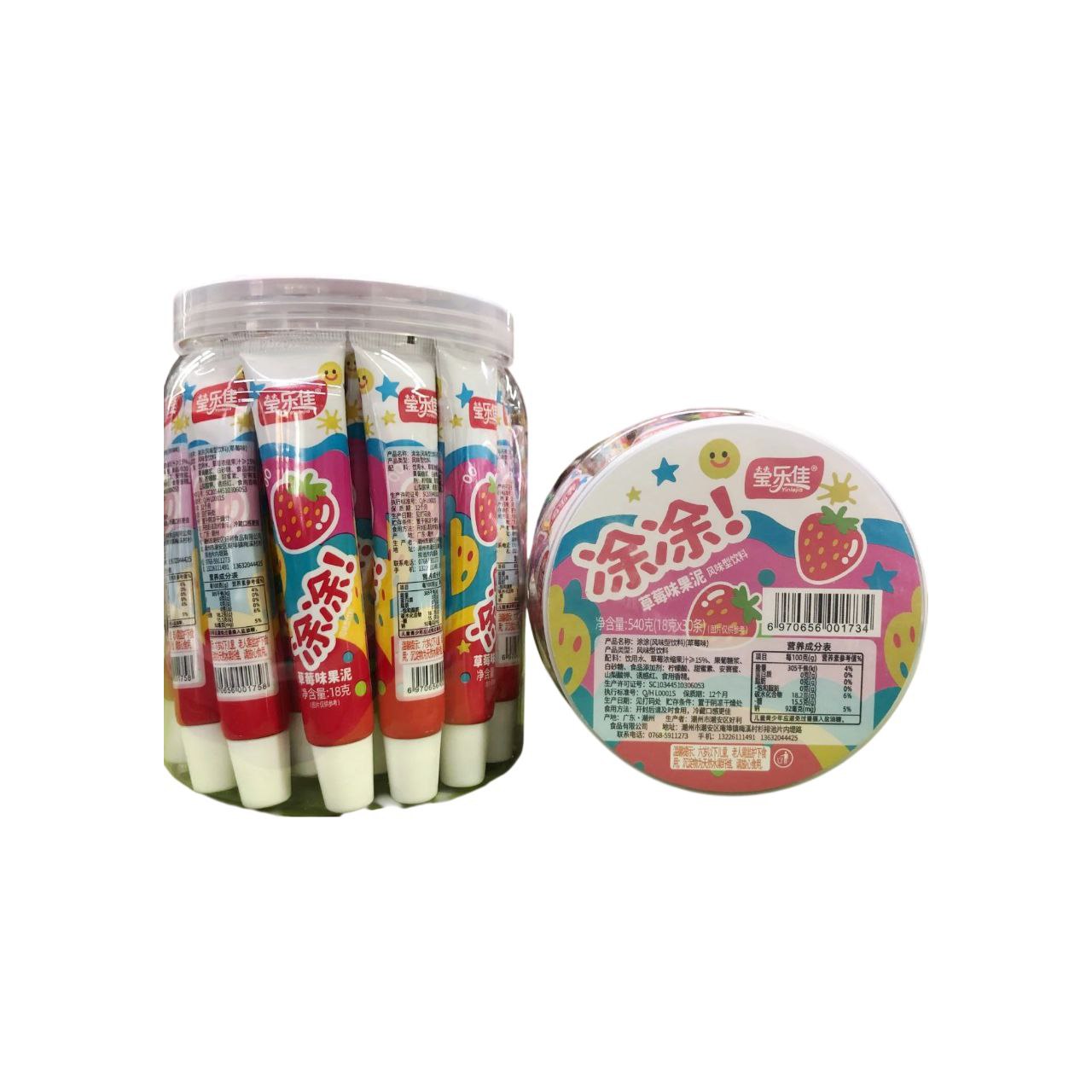 Пюре арт. 001734-2/001758-2 Фруктовое "Клубника" 18 г в тюбике 30 шт. в банке*