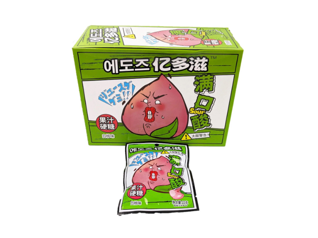 Конфета арт. 640084-1 Жевательная кислая "Персик" 22 г 20 шт. зеленая кор.;*
