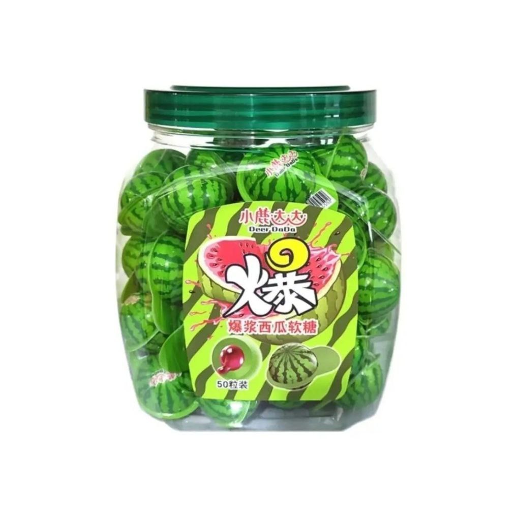 Конфета арт. 425011 Жевательная с жидким центром "Арбуз" 18 г 50 шт. в банке#