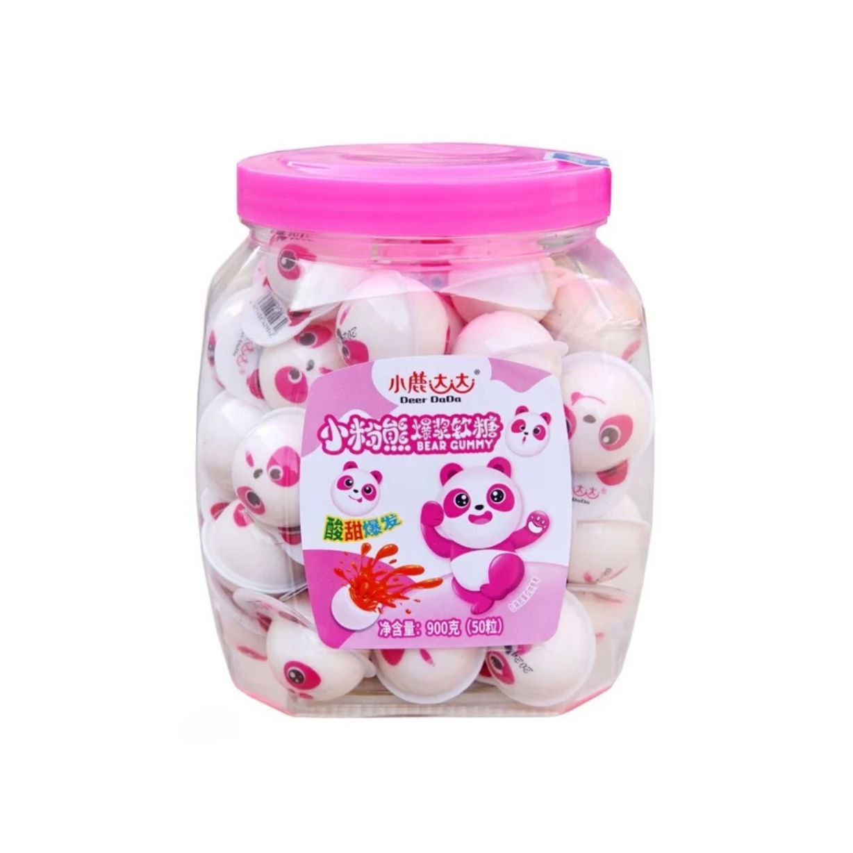 Конфета арт. 420719 Жевательная с жидким центром "Розовая панда" 18 г 50 шт. в банке#