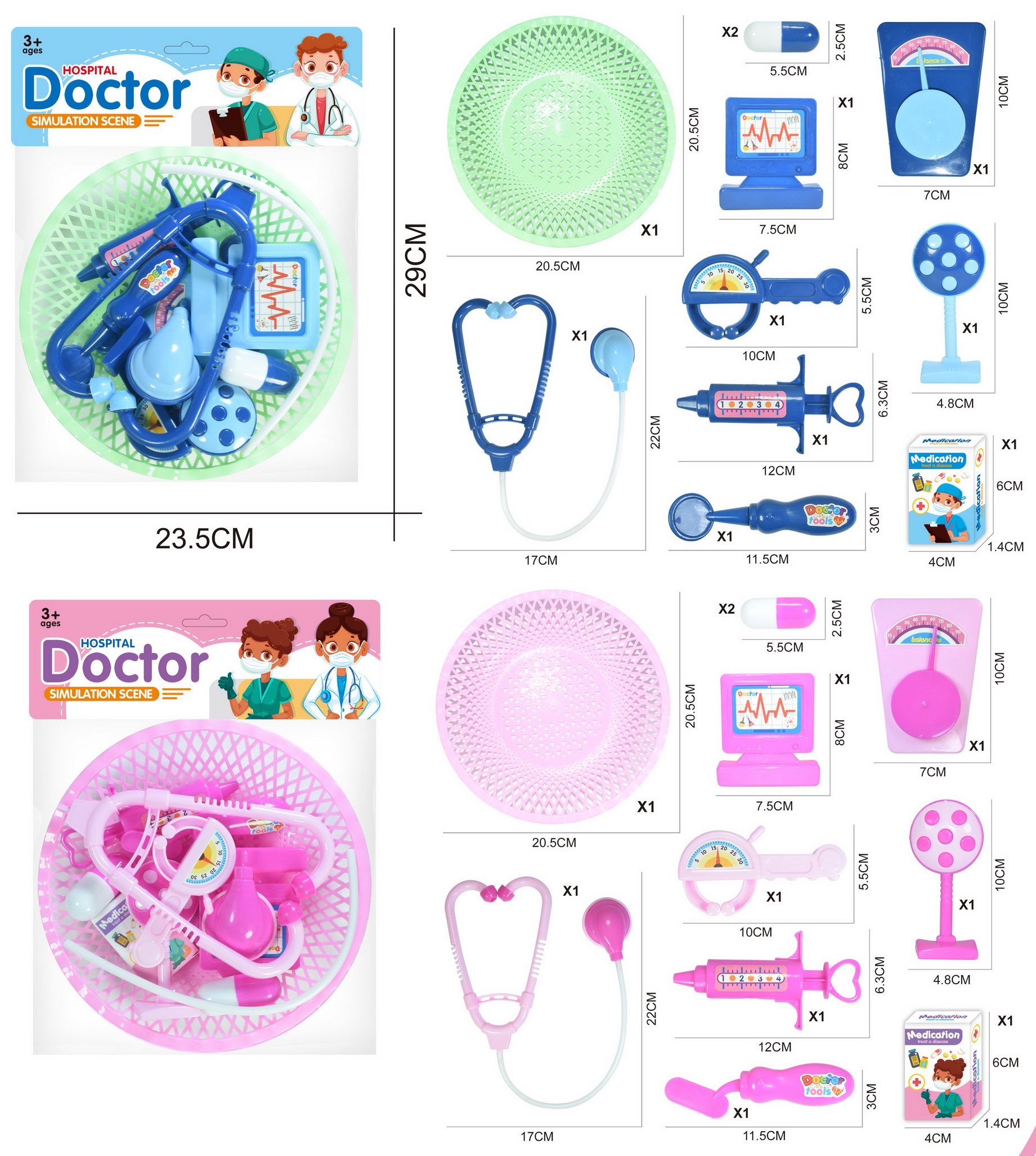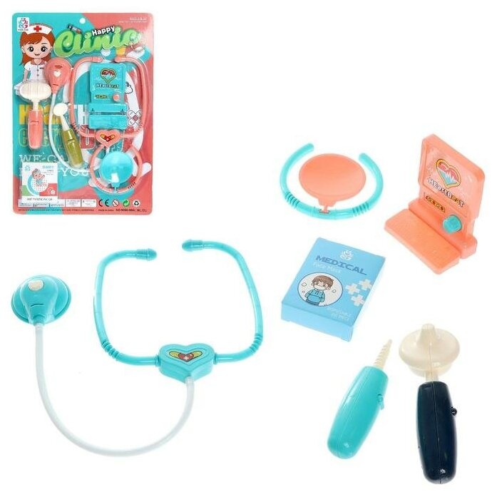 - Набор доктора арт. 9866-50C Блистер 38*26,4*4×Набор доктора арт. 9866-50C Блистер 38*26,4*4В наборе: стетоскоп (для выслушивания сердца и лёгких), кардиотахограф, отоскоп (инструмент лор-врача), рефлектор лобный, молоточек, бор, ложечка, коробочка