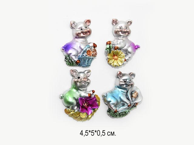 Магнит свинка керам. арт. 8041 Цветная с цветами в пак.°Магнит свинка керам. арт. 8041 Цветная с цветами в пак.°