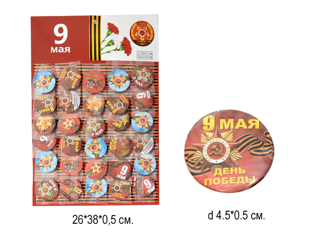 Значок арт. 209924 "9 мая" в ассортименте 30 шт. на листеЗначок арт. 209924 "9 мая" в ассортименте 30 шт. на листе