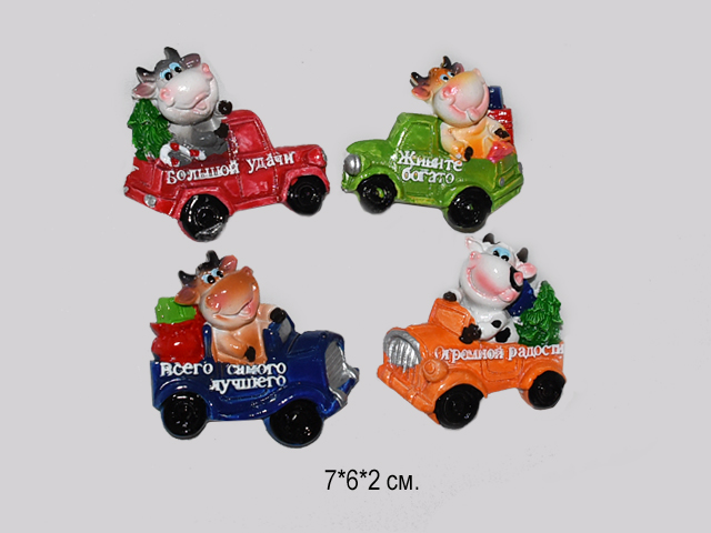Магнит керамический арт. 8616 "Бычок на машинке" 1шт. (24шт.) в кор.Магнит керамический арт. 8616 "Бычок на машинке" 1шт. (24шт.) в кор.