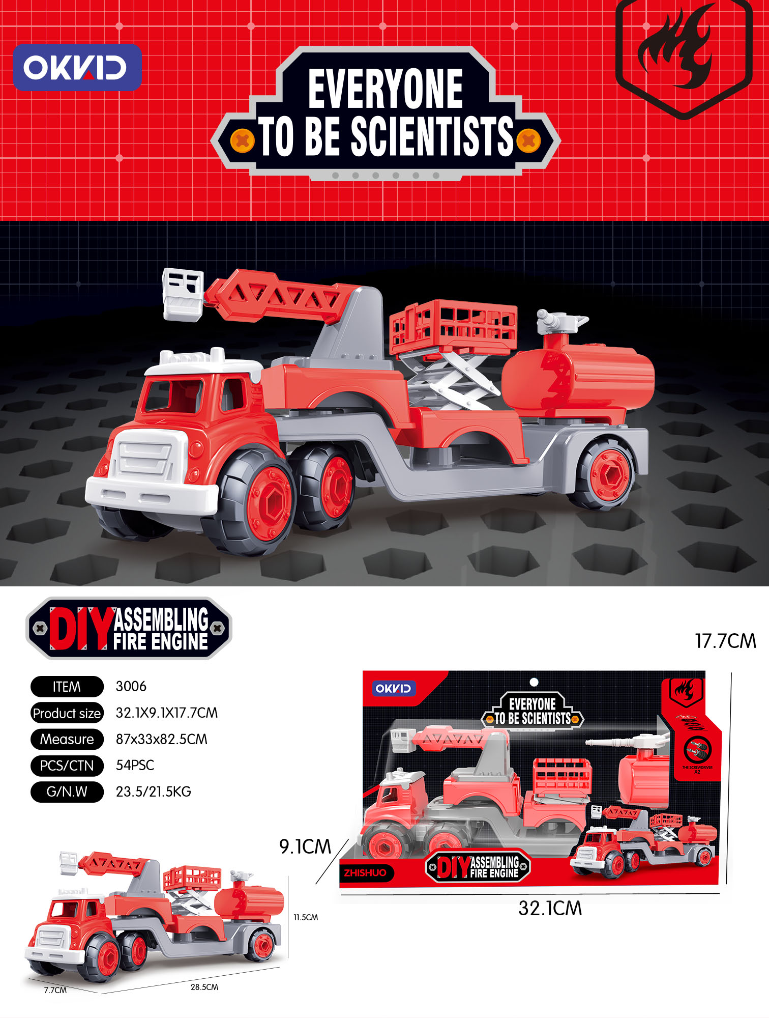 Машина констр. арт. 3006 Пожарная с отверткой в коробке 32,1*9,1*17,7