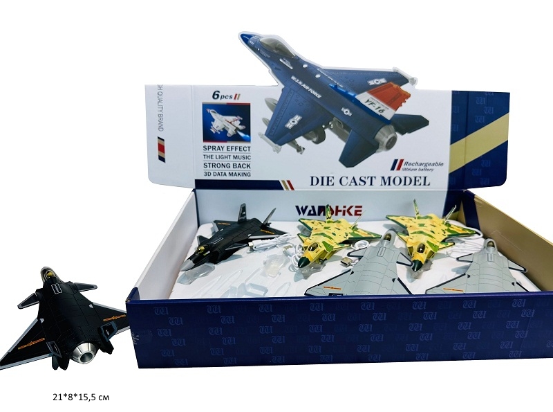 Самолет арт. W9613-3 Инерц. модель металл свет, музыка, пар, USB (6 шт.) в кор.•