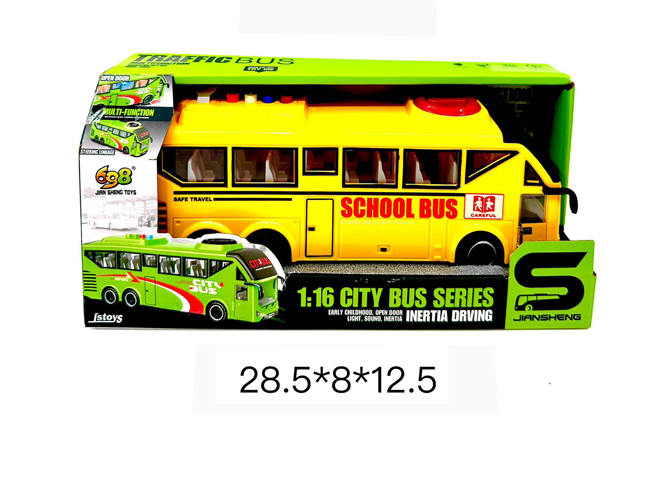 Автобус арт. YM-1114G1 Инерц. со школьн. автобусом в прицепе свет, шестеренки в пак._