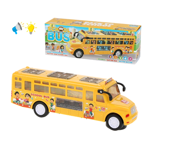 Автобус арт. A422-1Y Школьный свет, вращение 360° на бат. в кор.)