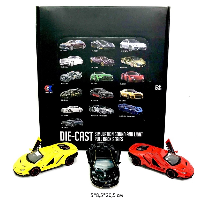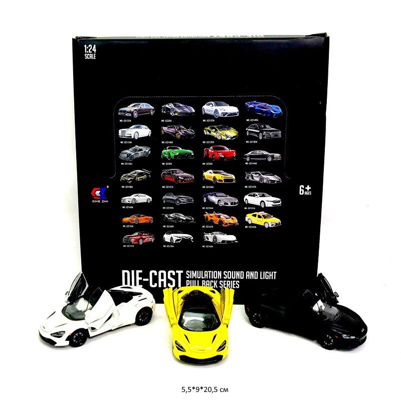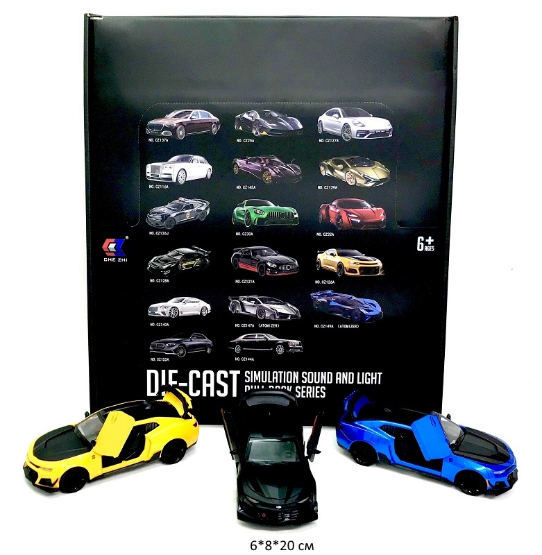 - Модель металл. арт. CZ25A Суперкар цвета микс (8 шт.) шоубокс_×Модель металл. арт. CZ25A Суперкар цвета микс (8 шт.) шоубокс_Металлическая машинка Суперкар цвета в ассортименте. Открываются двери, детально проработанный салон.