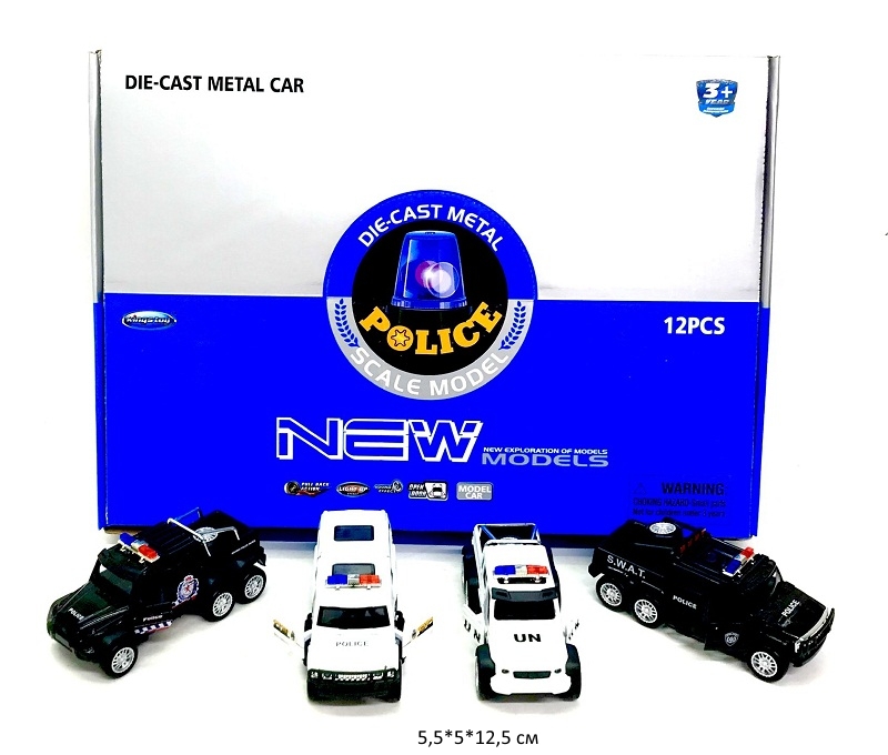 - Модель металл. арт. FY6088P-12D Джип Полиция, Спецназ (12 шт.) шоубокс_/24шт./×Модель металл. арт. FY6088P-12D Джип Полиция, Спецназ (12 шт.) шоубокс_/24шт./Металлическая машинка полицейский внедорожник, цвета в ассортименте.