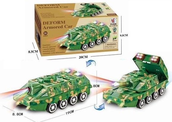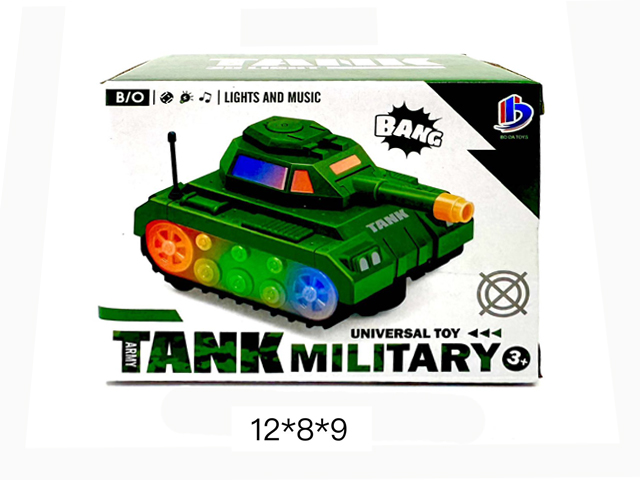 Игрушка без индивидуальной упаковки178.69 руб.357.37 руб. - Танк арт. 388-58YJ" на батарейках в коробке 19*8,8*8×Танк арт. 388-58YJ" на батарейках в коробке 19*8,8*8Красочный военный БТР со звуковыми и световыми эффектами понравится любому ребенку! Игрушка катается по комнате в хаотичном направлении, при возникновении препятствий, автоматически поворачивает в другую сторону. У машинки и поднимается оруженйный отсек!
