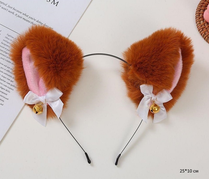 Ободок арт. 209625 Ушки кошки мех рыжий с бантиками в пак.