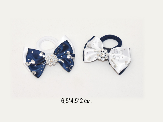 Бант арт. 709-B01-3 Двухцветный рисунок круги серебро на резинке 2 вида (24 шт.) на листе