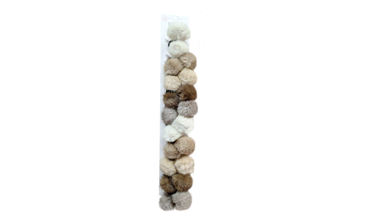 Резинка для волос арт. 709110 Коричнево-бежевые меховые шарики 10 пар на листе